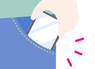 防犯アラームは緊急時に大音量を鳴らし、同時に保護者への電話発信※や位置情報の送信を行い、アプリ利用制限機能と合わせてお子さまにも安心してご使用いただけます。