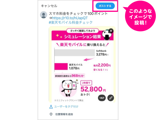 ポスト期間中に楽天モバイル公式Xをフォロー