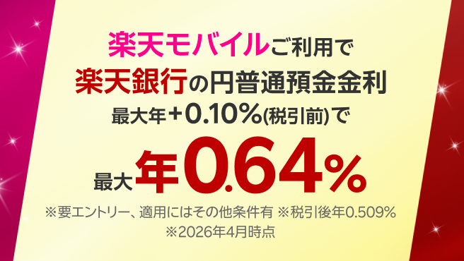 ※14 楽天銀行ボーナス金利商品のうち、最も高い上乗せ金利。自社調べ。※15 要エントリー、適用にはその他条件有。2026年4月時点