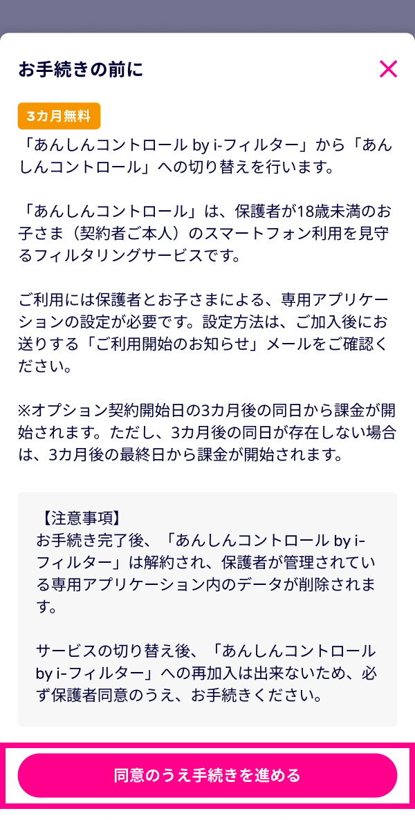 • 18歳未満の方が「あんしんコントロール」を解約される場合、保護者の承認が必要になります。