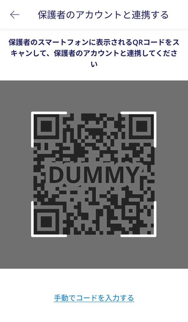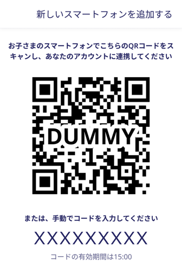 画面の指示に従って進めると、 お子さまの移行先スマートフォンを登録するためのQRコードと手動入力用コードが表示されます。