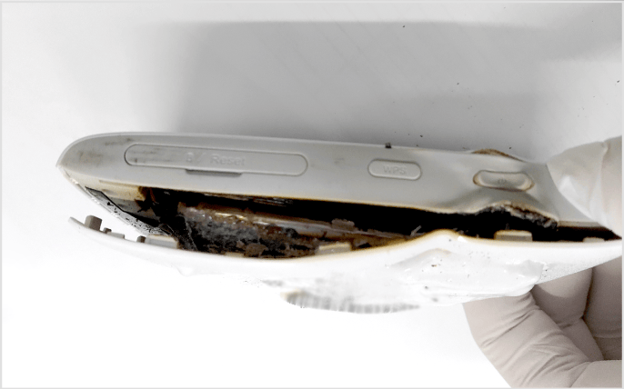 製品のこじ開けが原因による実際の発火事故例