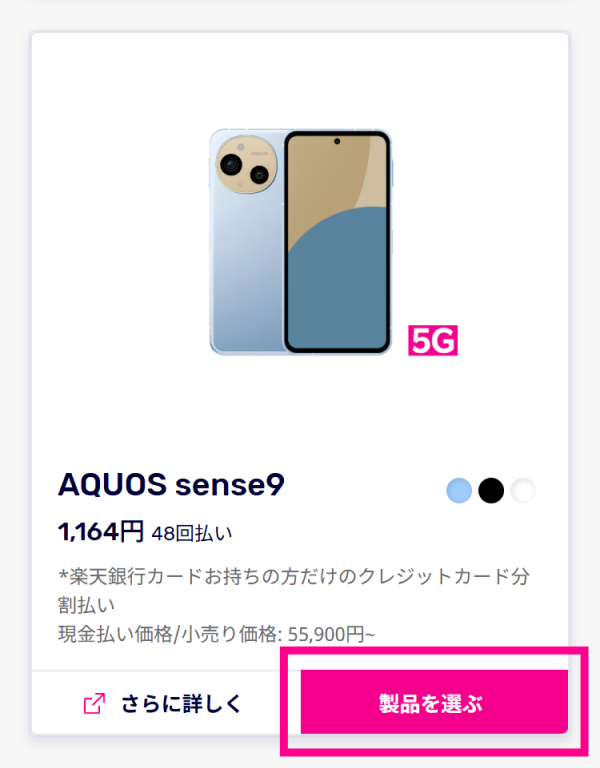 機種変更したい製品を決め、「製品を選ぶ」を選択します。