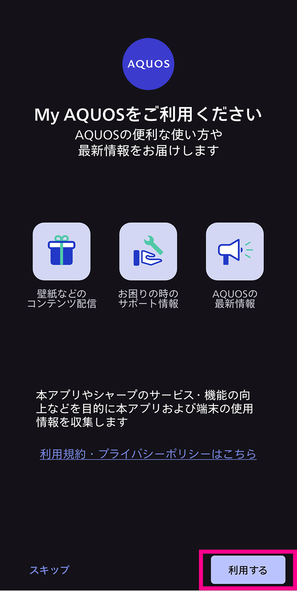 3. 3. 画面の指示に従って、設定を行ってください。不要の場合は「スキップ」をタップしてください。
