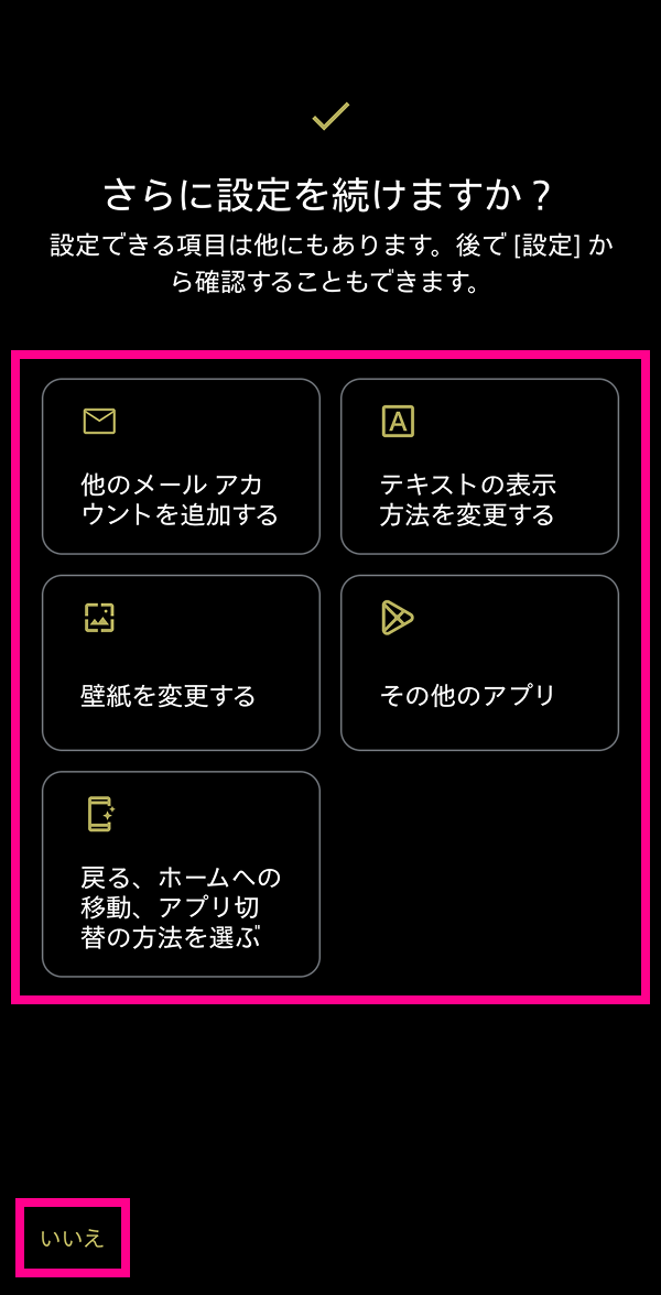 ※設定やアカウントなどをコピーする場合は、画面に従って設定を行ってください。