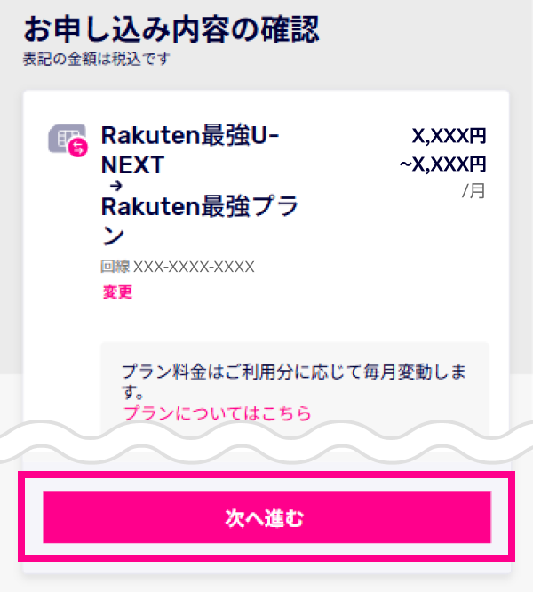 - 他回線への申し込み中など、Rakuten最強プランへのお手続きを開始できない場合があります。詳細は「現在利用中のプランから、他のプランに変更できません。なぜですか?」をご確認ください。