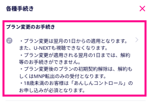 - Rakuten最強プランへの変更のお申し込み完了後からお手続き完了するまで一部のお手続きができません。詳細は「最強U-NEXTからRakuten最強プランへ変更申請中に、できないことはありますか?」をご確認ください。