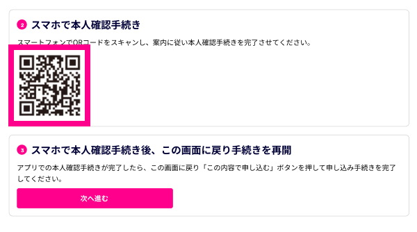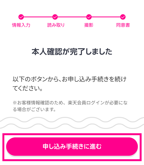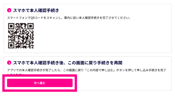 以上で「スマホでかんたん本人確認」の手続きは完了となります。引き続きお申し込み手続きを進めてください。