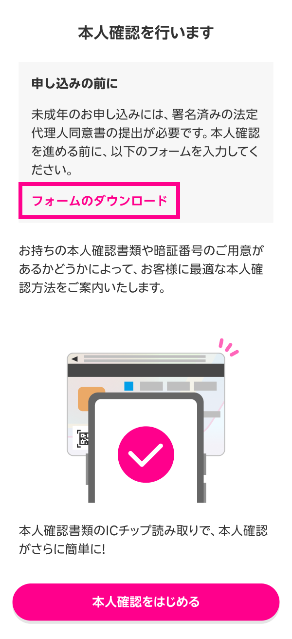 ※18歳未満のお客様は、法定代理人同意書 兼 支払名義人同意書の提出が必要となります。
