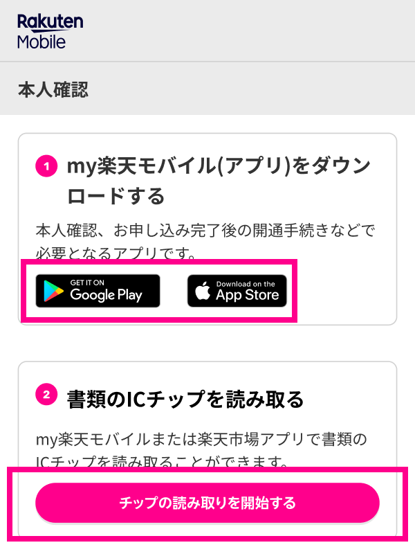 「スマホでかんたん本人確認」をご利用いただくにはmy 楽天モバイル(アプリ)が必要です。