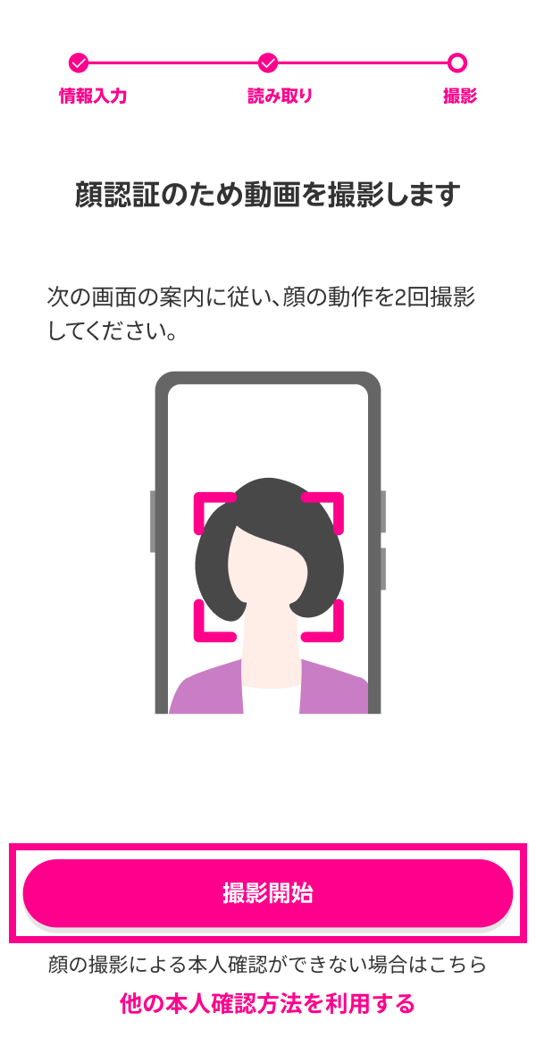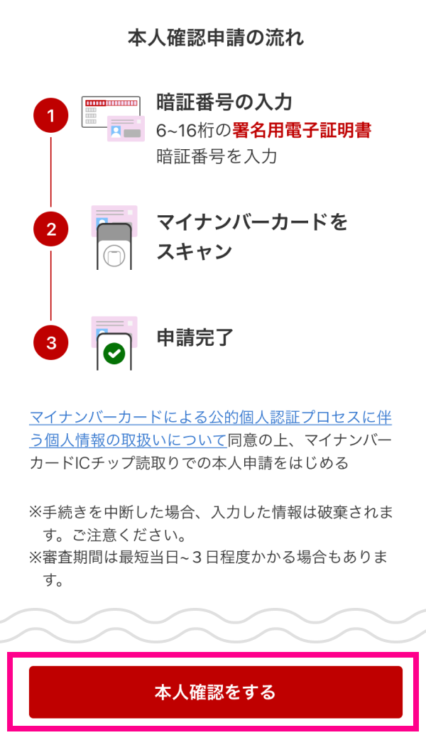 タップ後、本人確認の開始画面に遷移します。