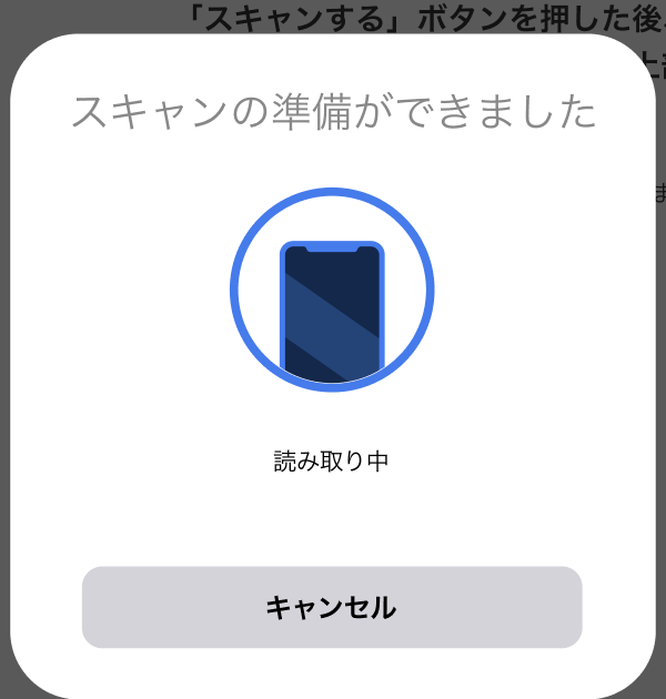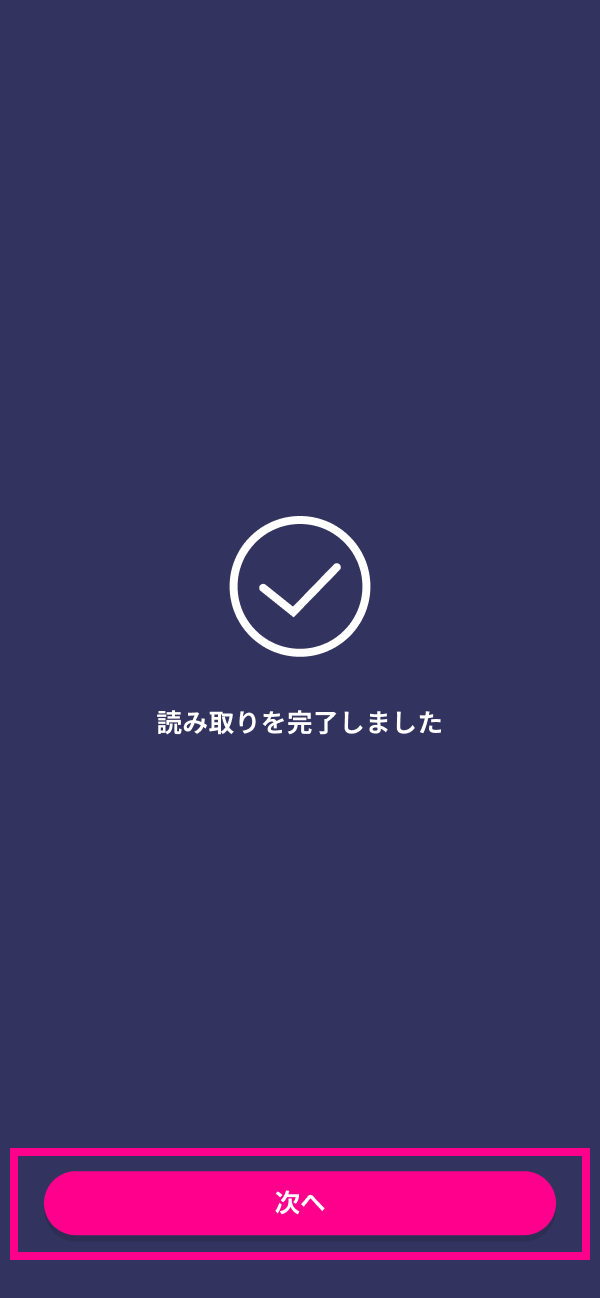 画面の指示に従って、お手持ちのスマートフォンの機種に応じた読み取り位置に、本人確認書類のICチップを近づけて読み取ります。