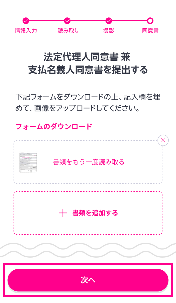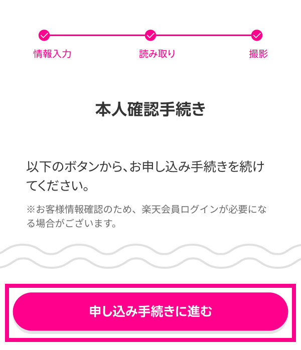 「申し込み手続きに進む」をタップし、手続きを進めてください。