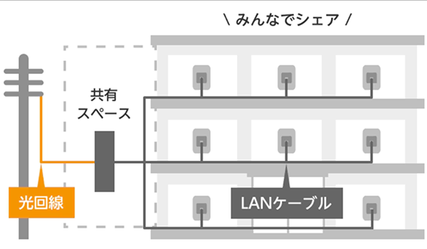 マンションや集合住宅にお住まいの場合、建物ごとに配線方式が定められており、その配線方式によって通信速度に影響する場合があります。