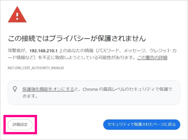 証明書をダウンロードし、インストールすることで管理画面にアクセスする際にセキュリティ警告が常に表示されなくなります。