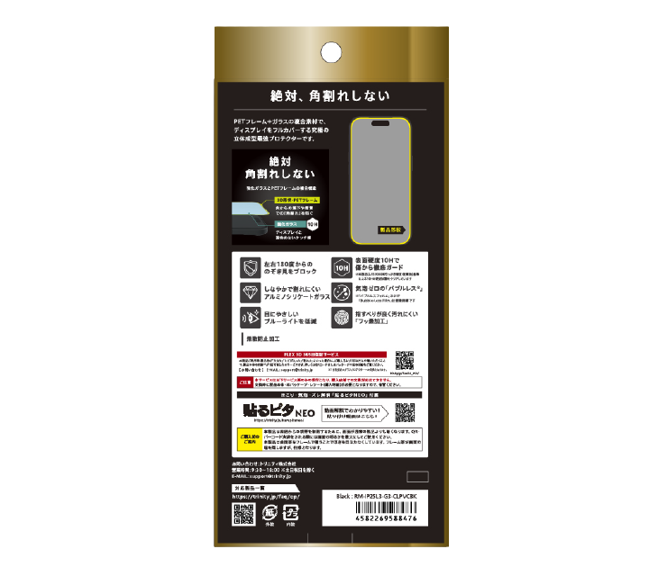 PETフレーム+ガラスの複合素材で、ディスプレイをフルカバーする究極の立体成型最強プロテクターです。左右180度からの気になるのぞき見をシャットアウトします。
