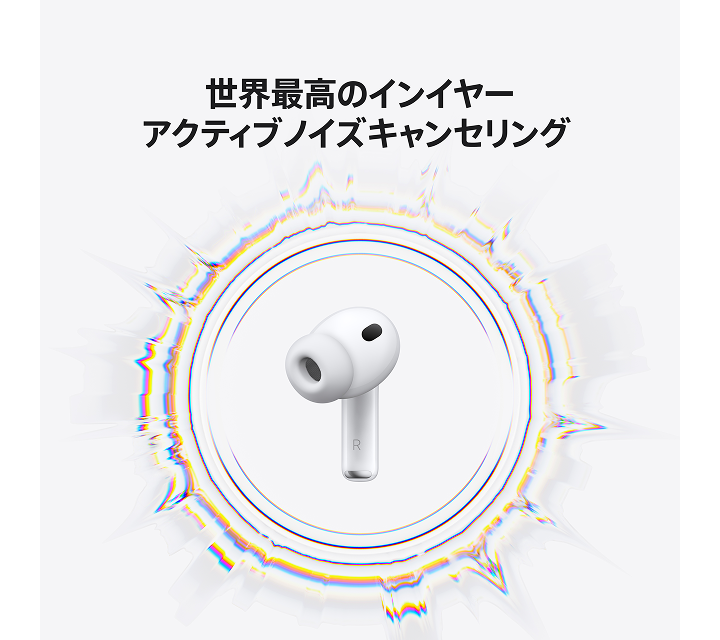 - 世界最高のインイヤーアクティブノイズキャンセリング — AirPods Pro 2 と比べて最大 2 倍の不要な雑音を低減 ※1。聴いているものに完全に集中していられます。