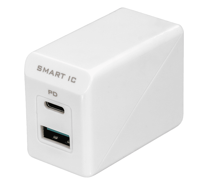 USB Power Delivery対応のUSB Type-Cポートとかしこく充電できるUSB Type-Aポートの各1ポートを搭載したUSB AC充電器です。USB Type-Cポートを単体で使用した場合、最大18Wの出力が可能です。