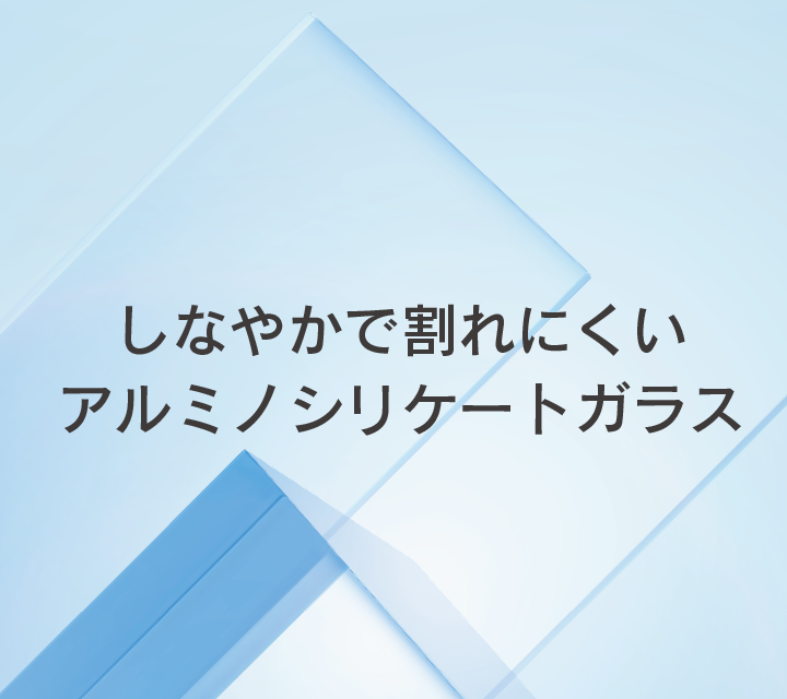 • 軽くしなやかで傷が付きにくいという特性のガラスです。化学強化の工程を加えており、一般的なソーダライムガラスよりも高い表面強度のガラスです。