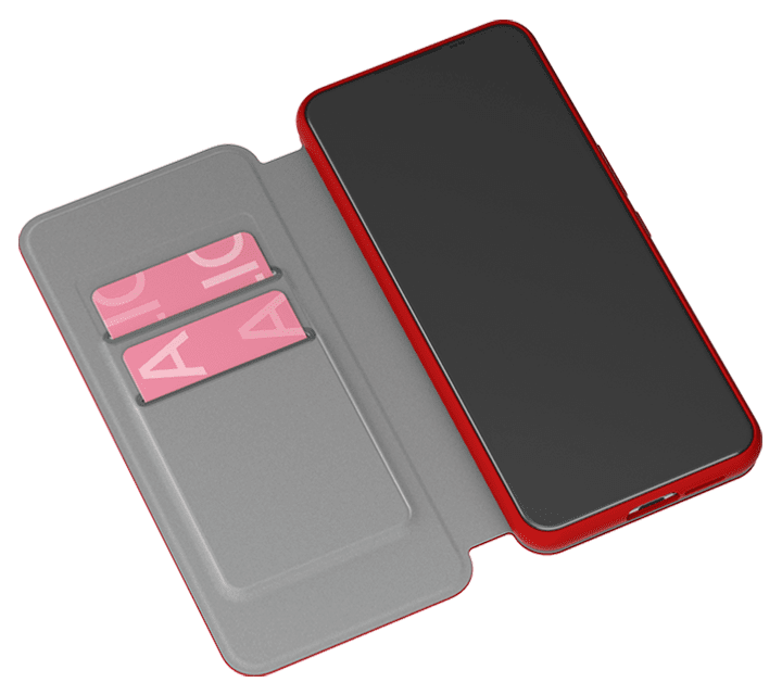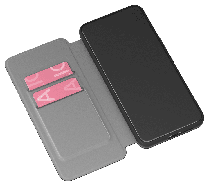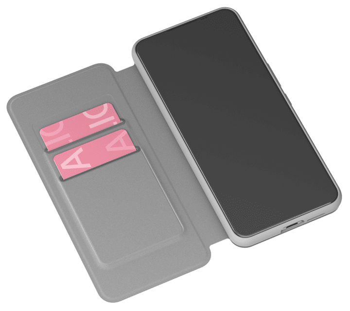 カードポケット(2枚)にはクレカや交通系ICカードが収納できます。挿入口はシリコンゴムで補強しました。