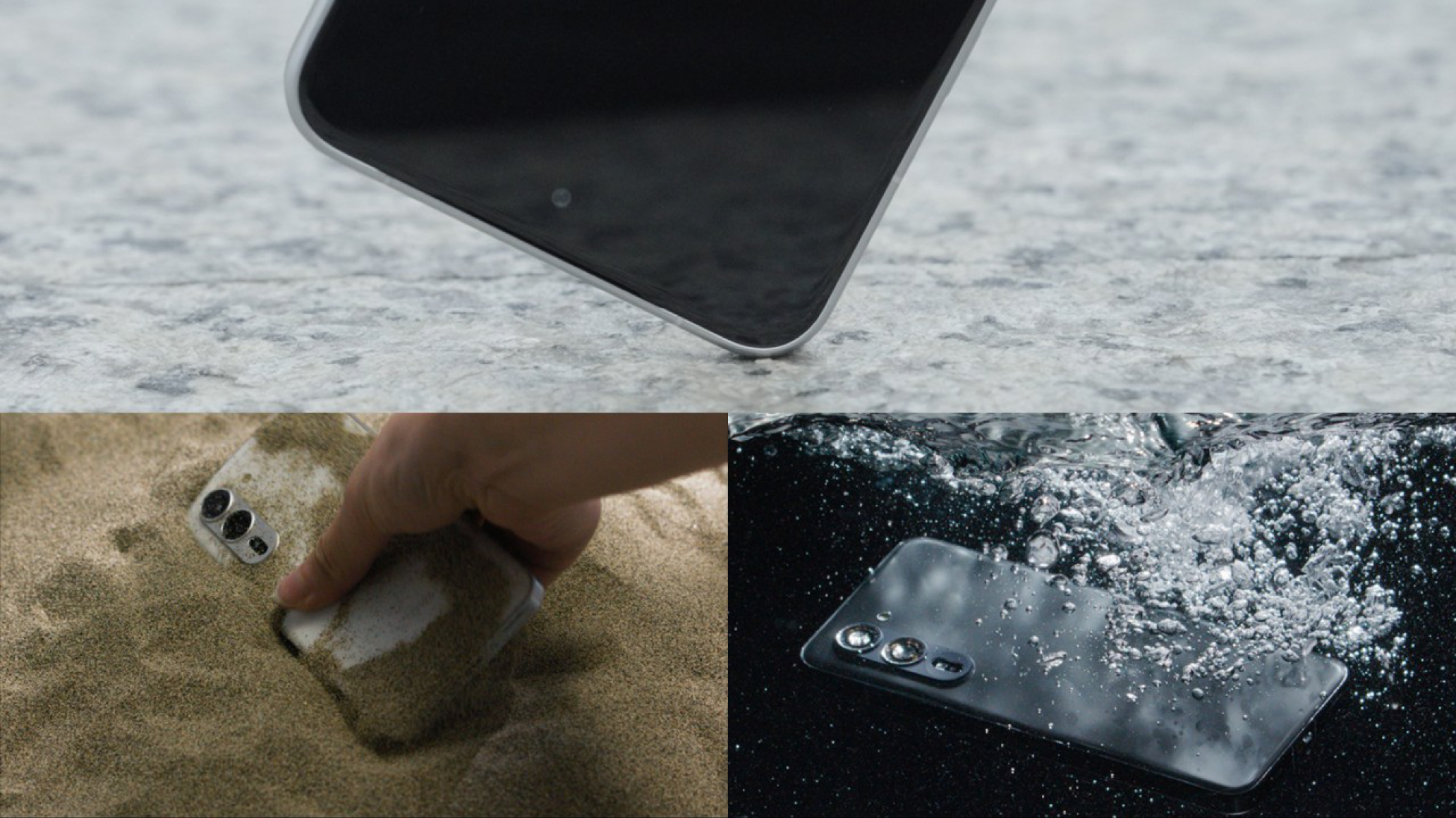 最大144Hzのなめらか表示の約6.4インチディスプレイを守るのは、世界最高水準の頑丈さ※6。米国国防総省の調達基準MIL規格23項目※7準拠に加え、1.5mの高さからコンクリートへ落下させても画面が割れにくい構造※8、IP6Xの防塵性能とIPX6/8/9の最高水準の防水性能で守られています。