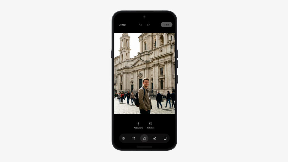 Nothing Galleryアプリに新機能のAI消しゴムが登場。タップ1回で不要な被写体や人物、反射を瞬時に消去できます※2。処理はすべてデバイス上で行われるので、写真が外部に送信されることはありません。