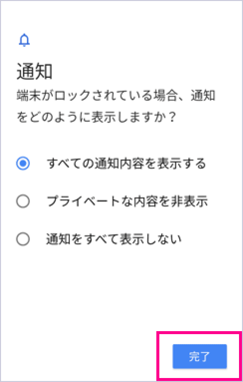 通知画面が表示されます。通知方法を選択し、「完了」をタップしてください。