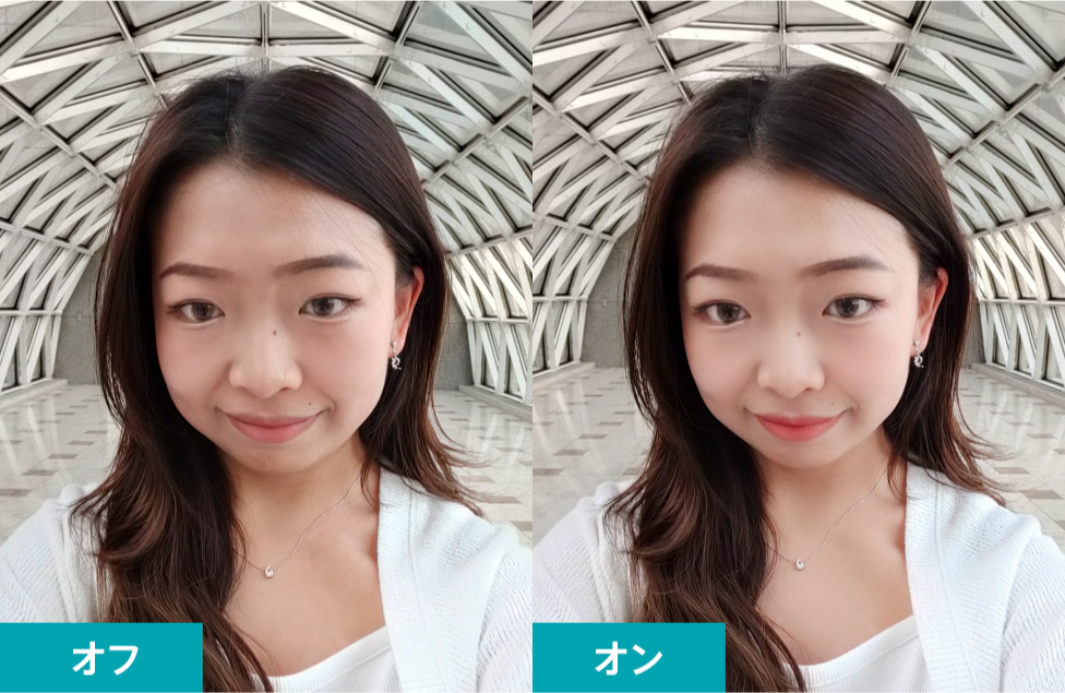 起動すると年齢、性別などに応じて自動補正。肌や目鼻などパーツ別に補正強度を調整することもできます。
